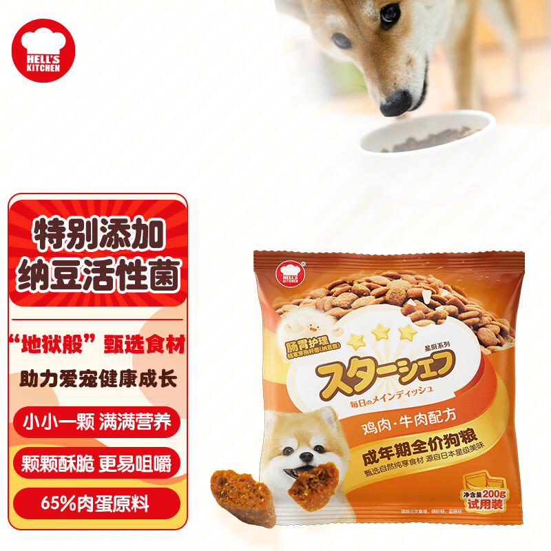 地狱厨房( Hell's Kitchen)全价狗粮 鸡肉牛肉配方 中小型犬 纳豆菌 鸡肉味 200g 试用装