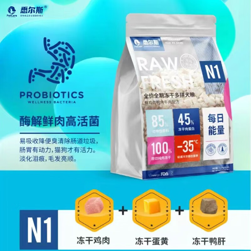 YEE悉尔斯全价冻干多拼犬粮酶解鲜肉蛋黄鸡肉鸭肝生骨肉成幼犬狗粮 悉尔斯N3蛋黄生骨肉犬粮 1.5kg 全期