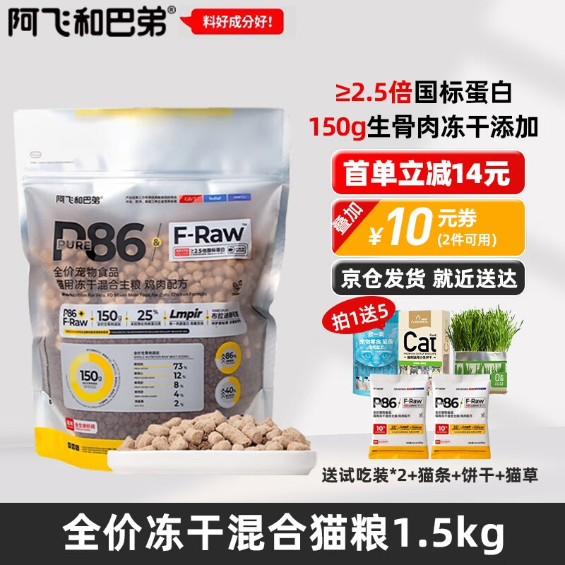 阿飞和巴弟P86F全价冻干混合猫粮添加生骨肉成猫幼猫粮鸡肉口味 鸡肉配方1.5kg