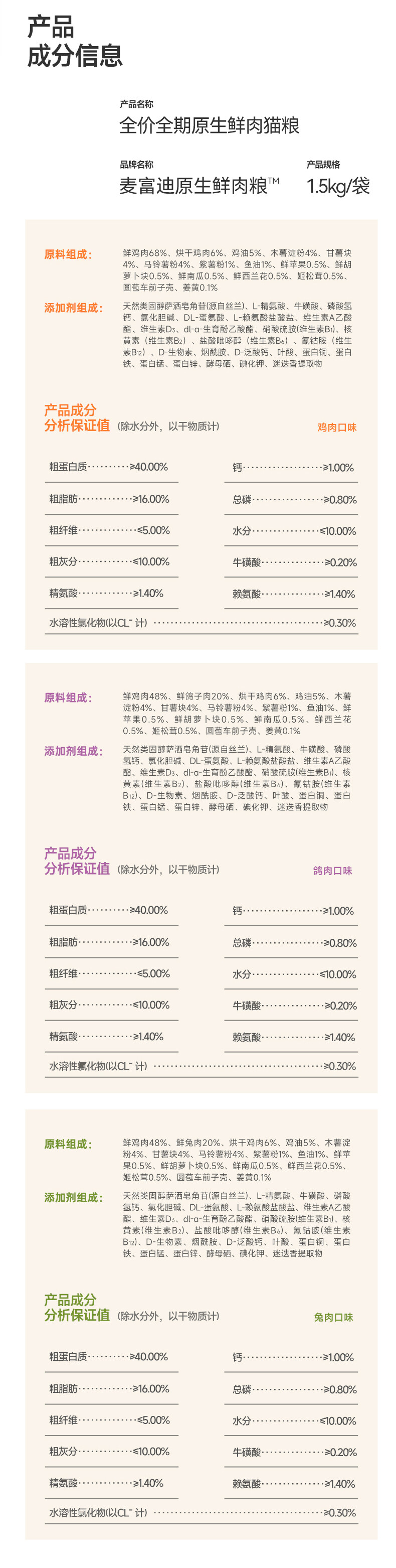 麦富迪猫粮 全价全期原生鲜肉猫粮鸡肉/鸽肉/兔肉100g/1.5kg
