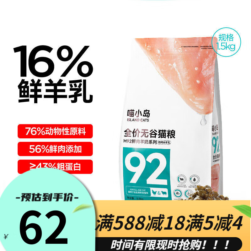 短云喵小岛无谷猫粮羊乳鲜肉增肥发腮全价营养全价猫食全阶段鲜肉猫粮 鲜肉羊乳配方无谷猫粮 3kg 全阶段