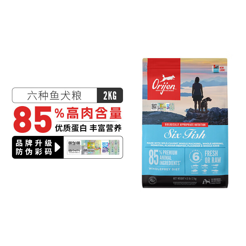 Orijen渴望无谷六种鱼味全阶段犬粮2kg美版【含肉量85%】 升级鱼肉2kg
