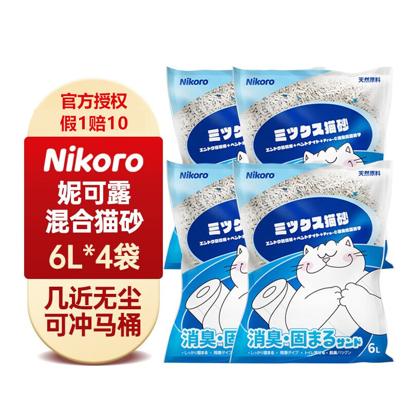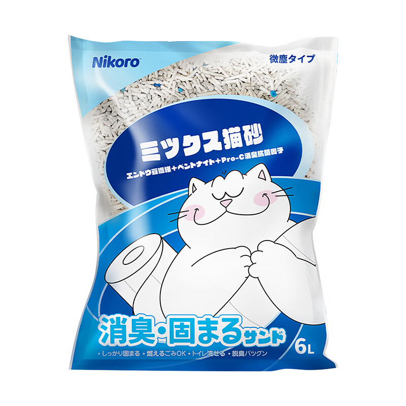 NIKORO妮可露宠物混合豆腐膨润土猫砂除臭无尘结团抑菌猫砂 【原味】混合猫砂6L(2.5kg)*4