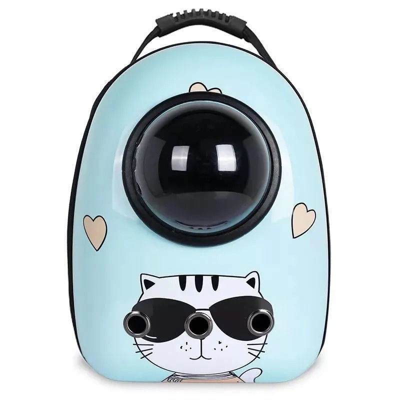 双肩包宠物包太空舱猫包大容量狗包透气背包猫咪包外出便携胸前包 蓝色眼镜猫12孔(四件套)