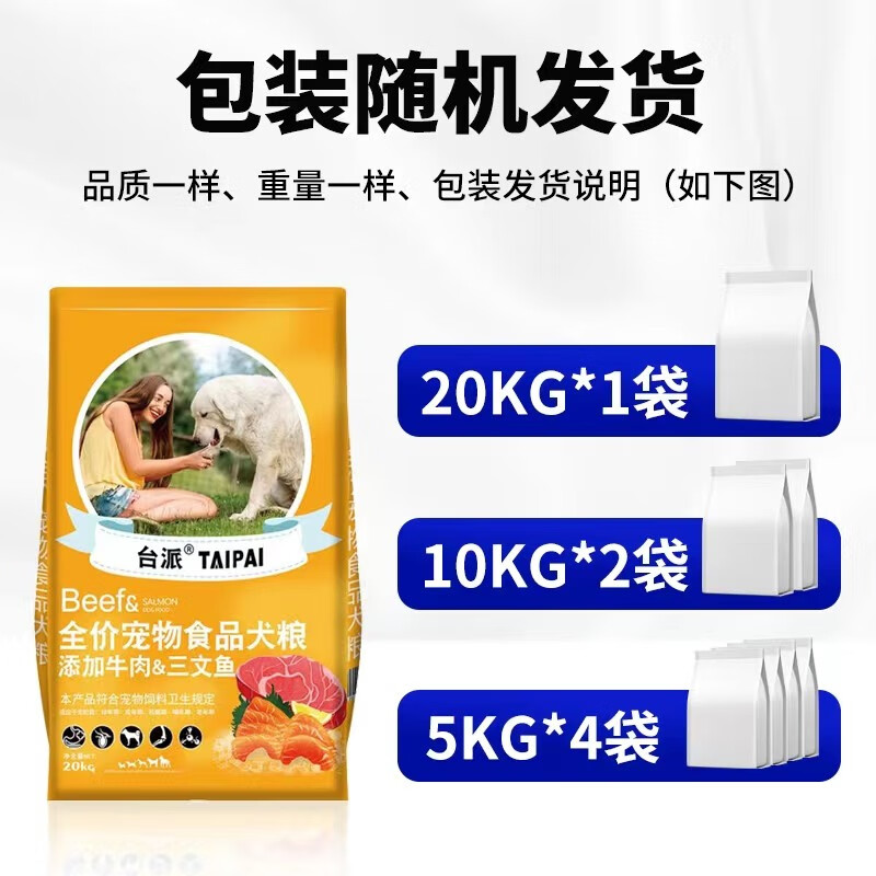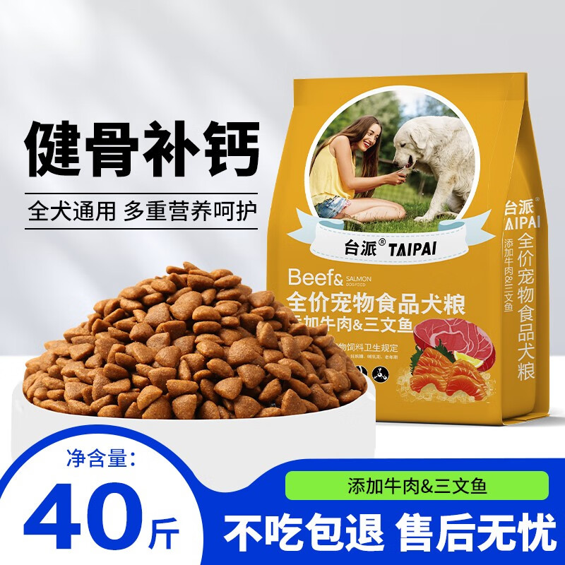 霆特台派 狗粮20KG40斤装泰迪金毛柯基拉布拉多成犬幼犬小型中型犬通 型犬通用型