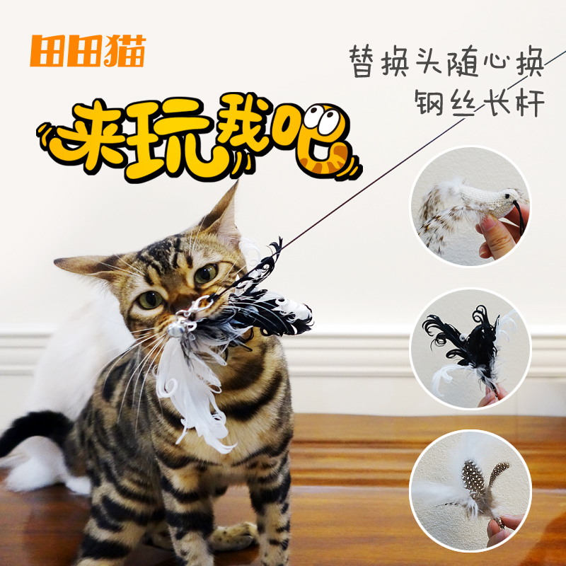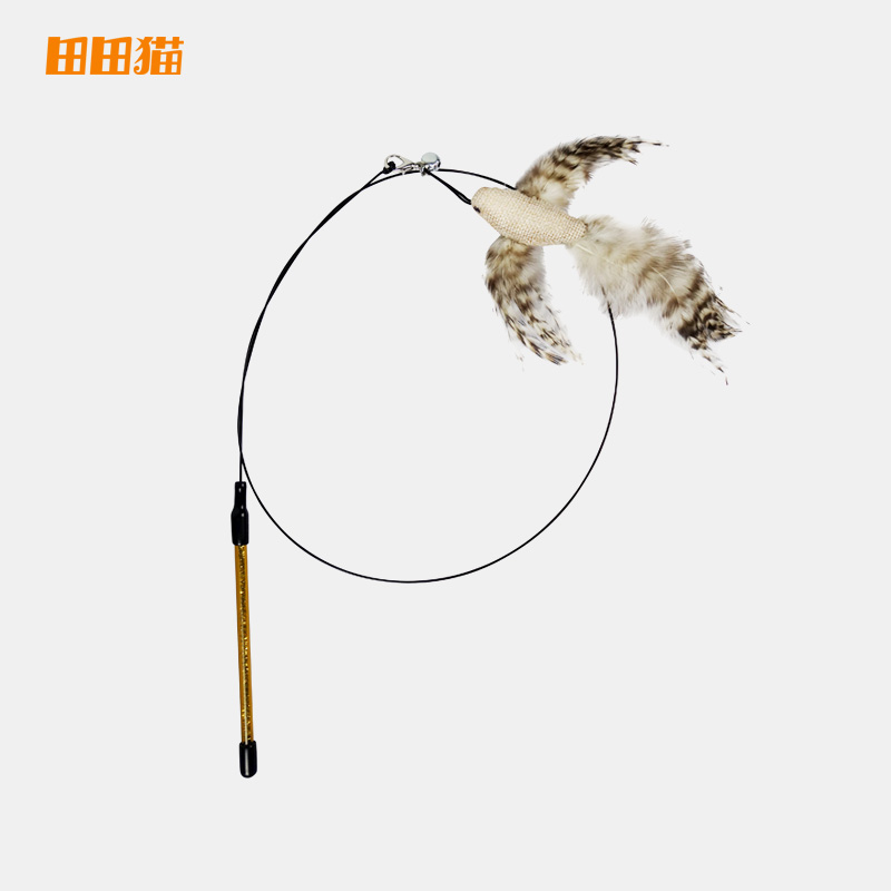 【升级新款】田田猫猫玩具 长杆钢丝羽毛逗猫棒替换头猫咪用品猫玩具耐咬逗猫器猫用品 2105A绶带鸟逗猫棒咖