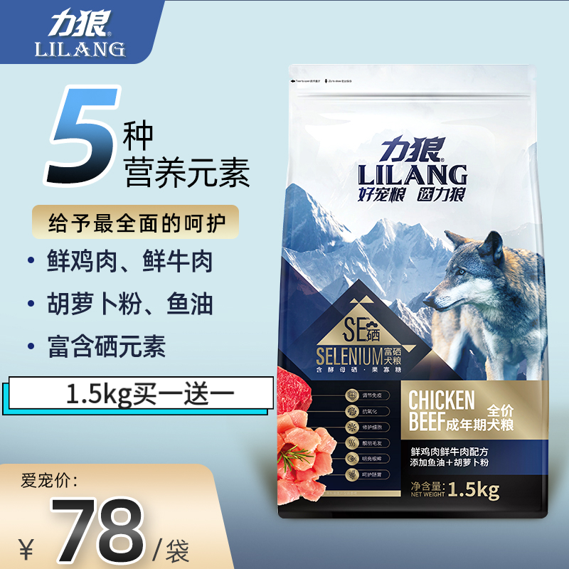 【不吃包退】力狼富硒成犬粮金毛拉布拉多哈士奇成犬通用粮10kg(添加鲜鸡肉 鲜牛肉) 1.5kg