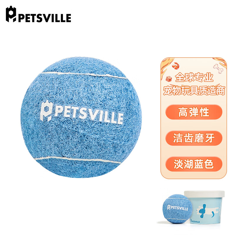 PETSVILLE 淡湖蓝狗狗网球玩具洁齿宠物玩具球互动训练宠物狗网球玩具糖果色适用柯基柴犬狗玩具