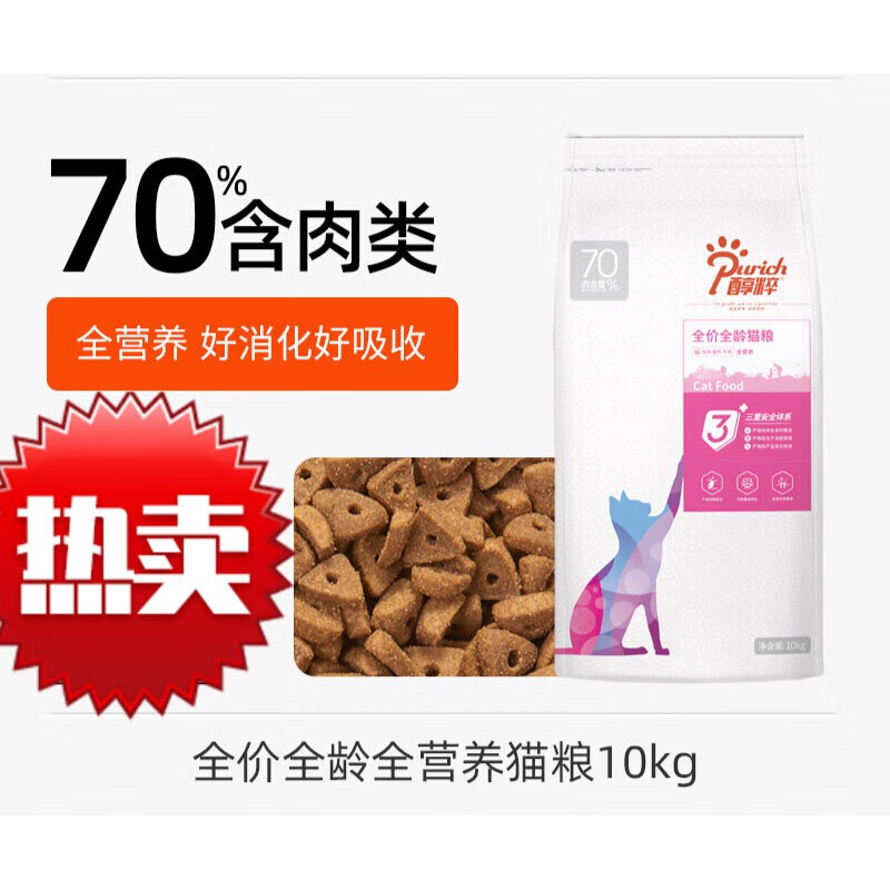 醇粹(Purich)全阶段全价猫粮10kg成猫低敏猫主粮纯粹成猫粮20斤大袋 全龄营养配方 10kg /包