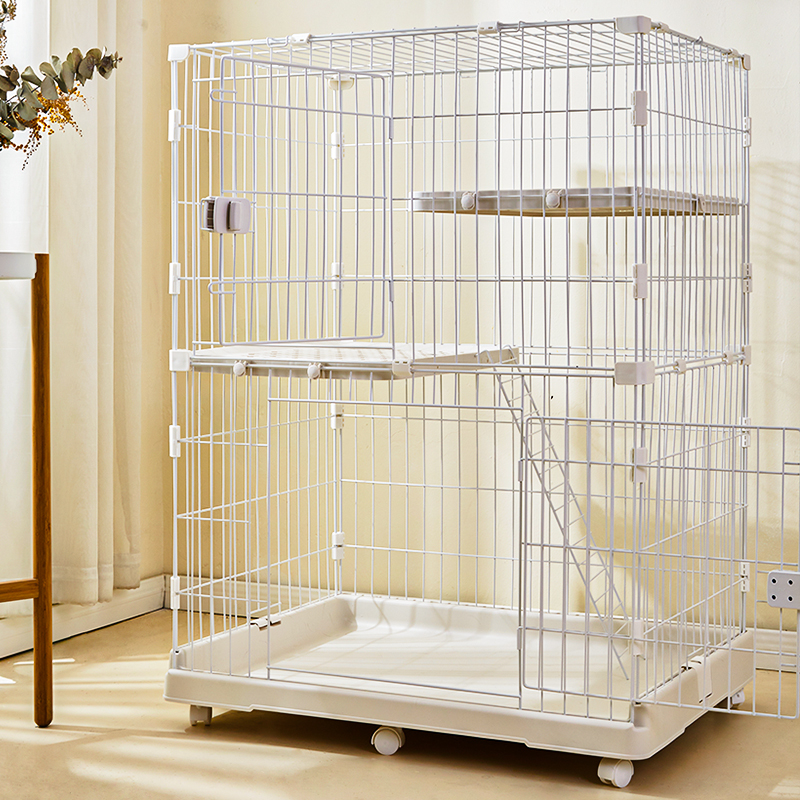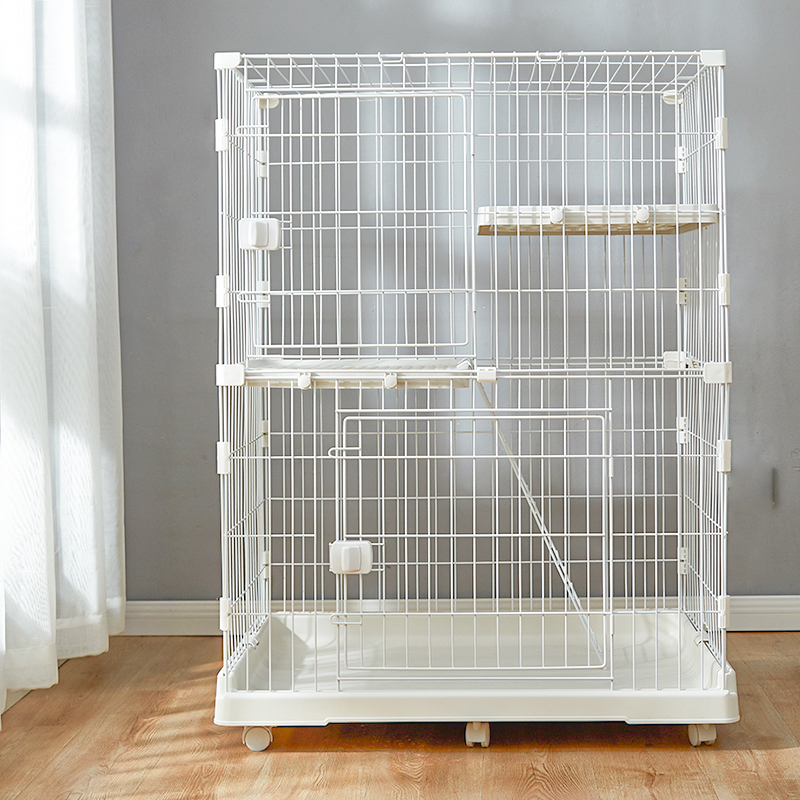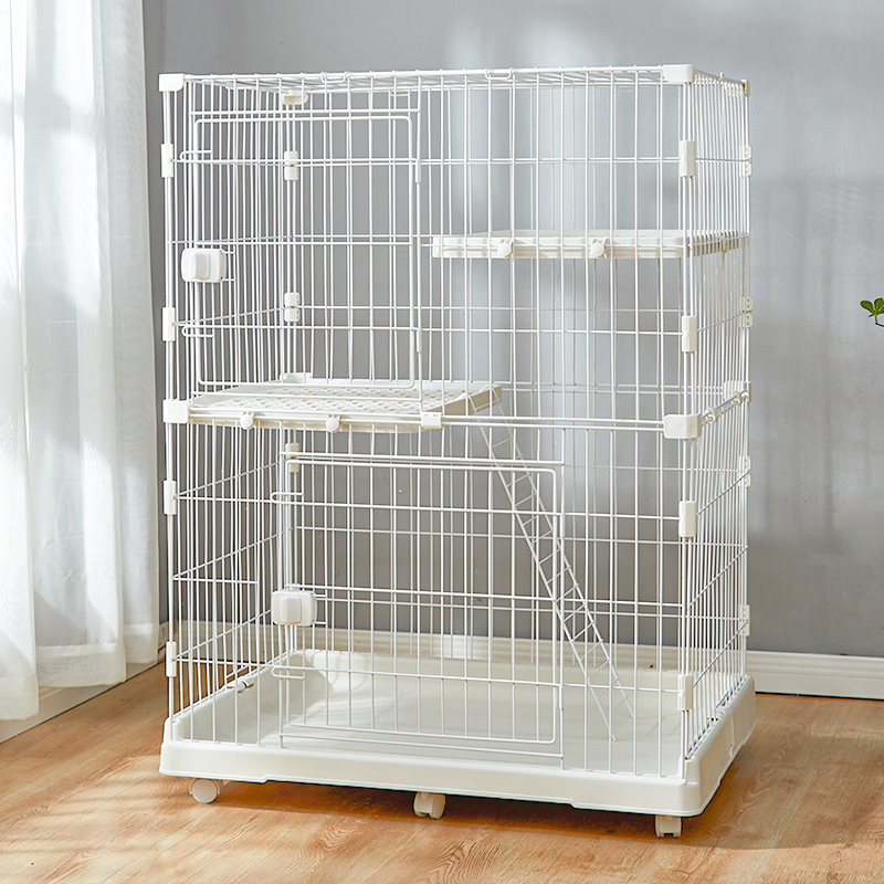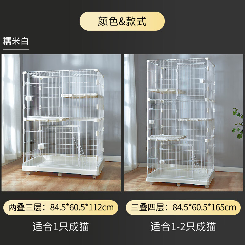 汤琪(TANGQI) 猫笼厕所一体大号猫别墅超大自由空间家用室内三层猫屋猫舍猫窝 糯米白 84.5*60.5*112cm