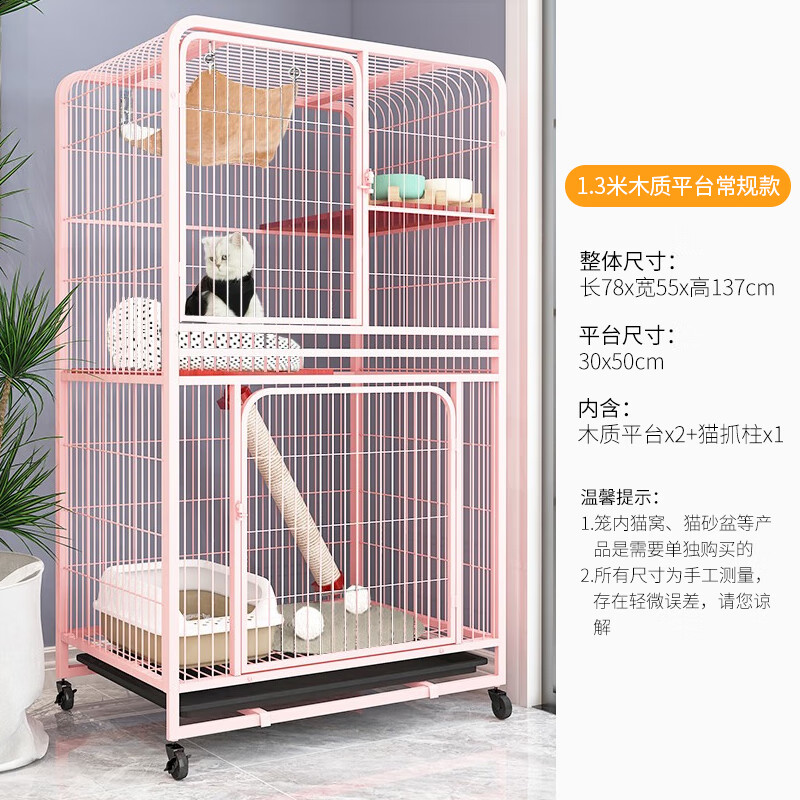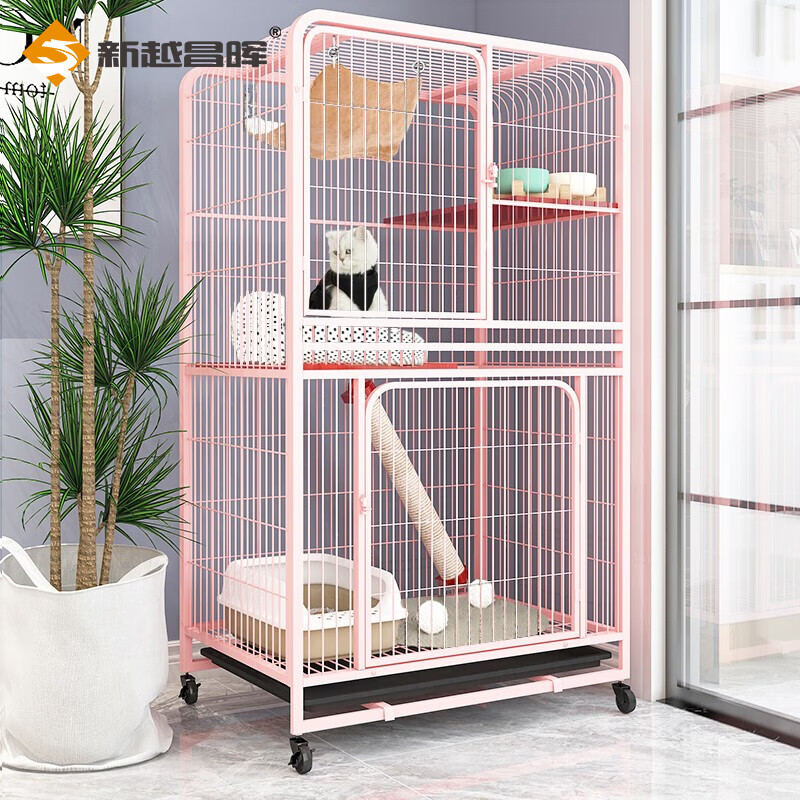 新越昌晖猫笼子 大号方管猫别墅三层猫柜 宠物猫咪房子猫窝猫屋 幼猫通用猫舍77*52*133cm 粉色XY-ML04F