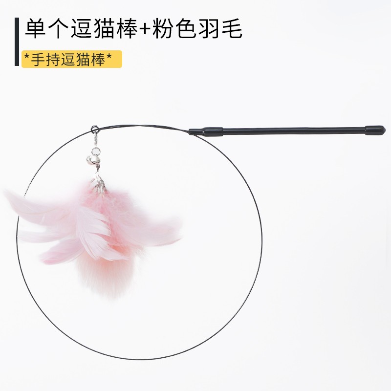 小囧 猫咪逗猫棒自嗨带铃铛吸盘猫玩具套装 手持粉色羽毛款