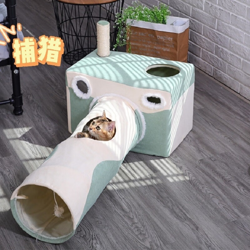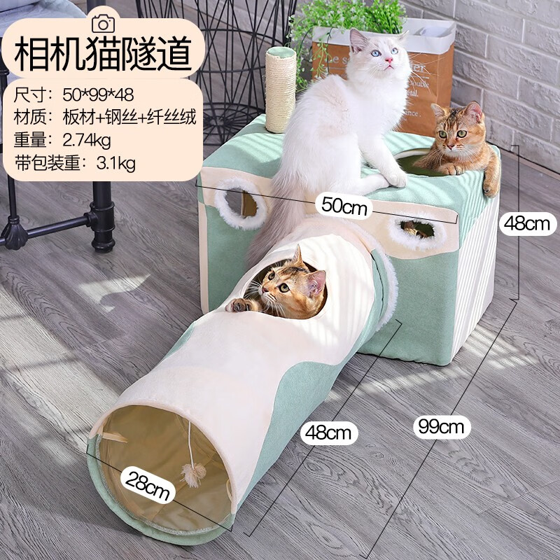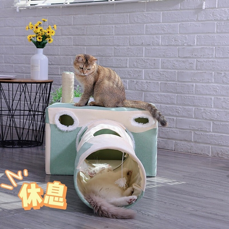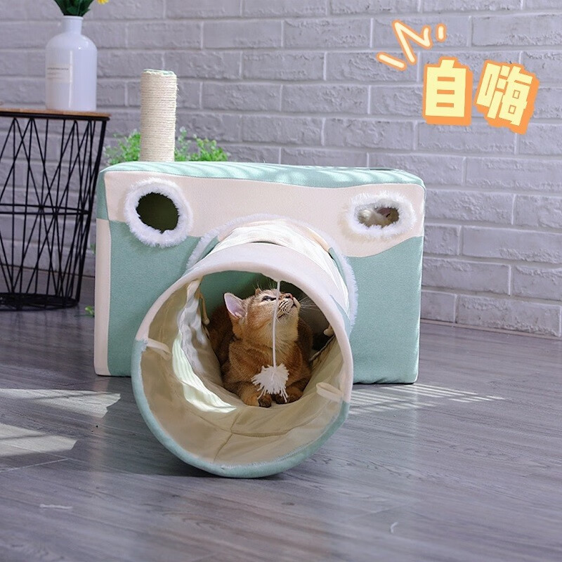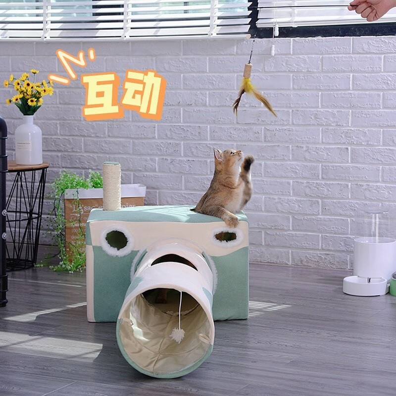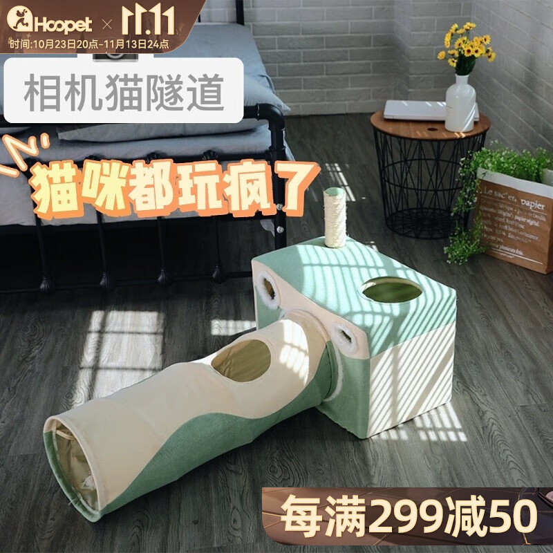 hoopet猫玩具转盘猫窝四季通用自嗨玩具球半封闭式可拆洗太空舱窝高颜值防侧翻凹碗猫咪用品 创意相机猫隧道猫窝 15斤内全年龄猫咪通用