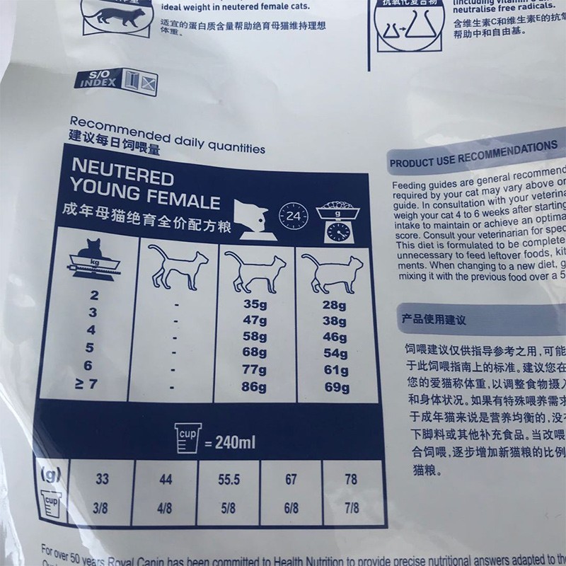 皇家配方猫粮 成年母猫绝育全价配方粮SW37/1.5KG