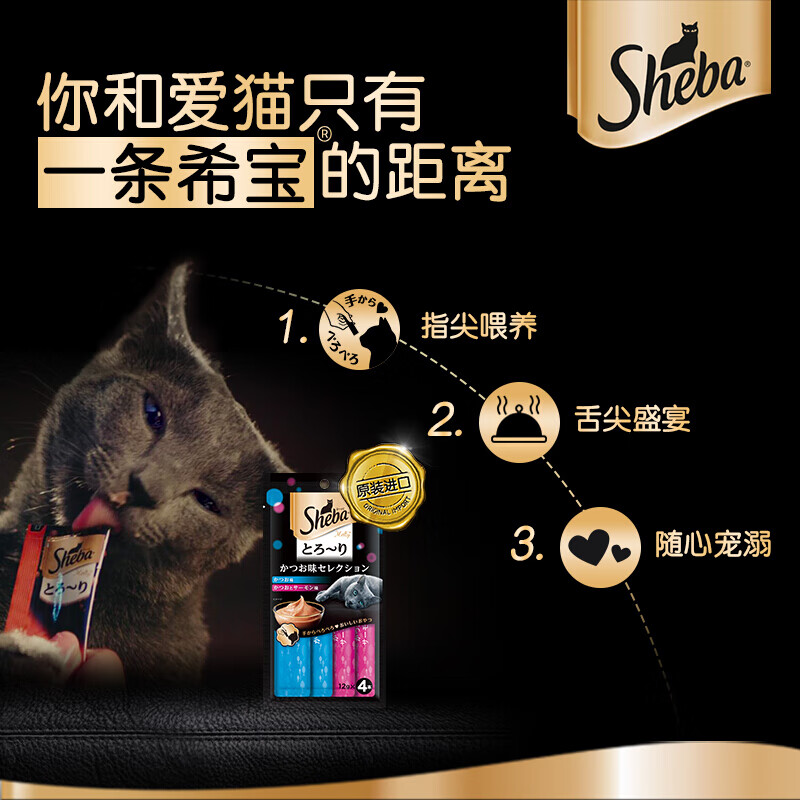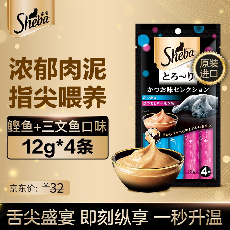 希宝(Sheba)猫零食成猫猫条原装进口情感互动 鲣鱼 三文鱼12g*4条
