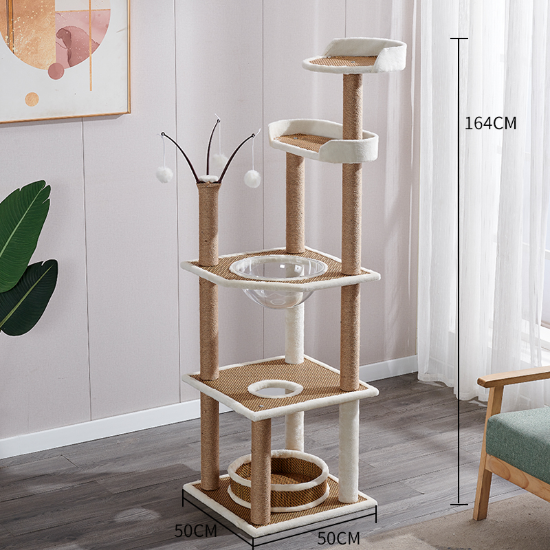 迦宠猫爬架猫窝猫树一体藤编猫窝猫抓板太空舱剑麻四季大跳台猫咪用品 2筐 太空舱Y-818