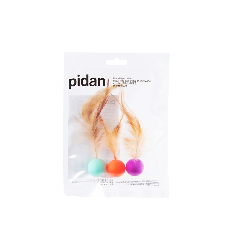 Pidan猫玩具皮蛋羽毛弹力球逗猫棒3只跳跳球自嗨解闷神器猫咪用品