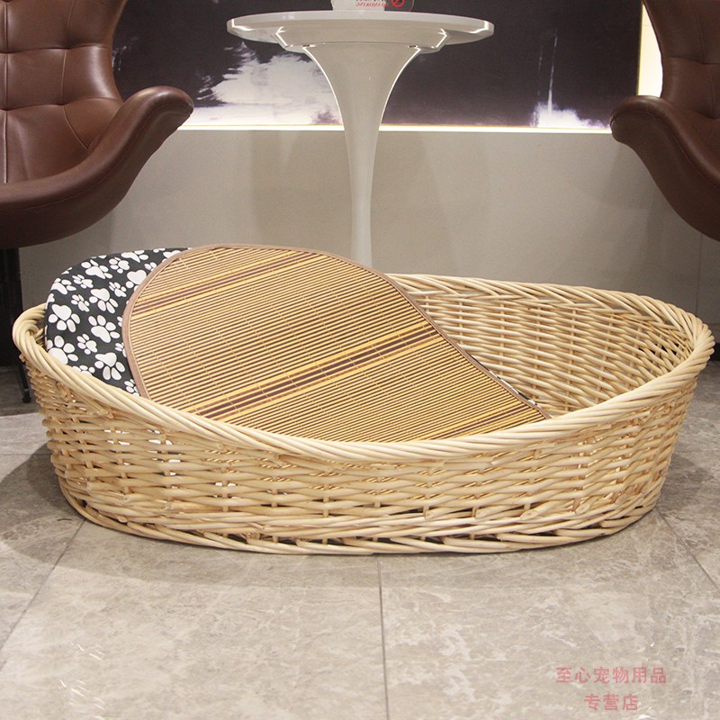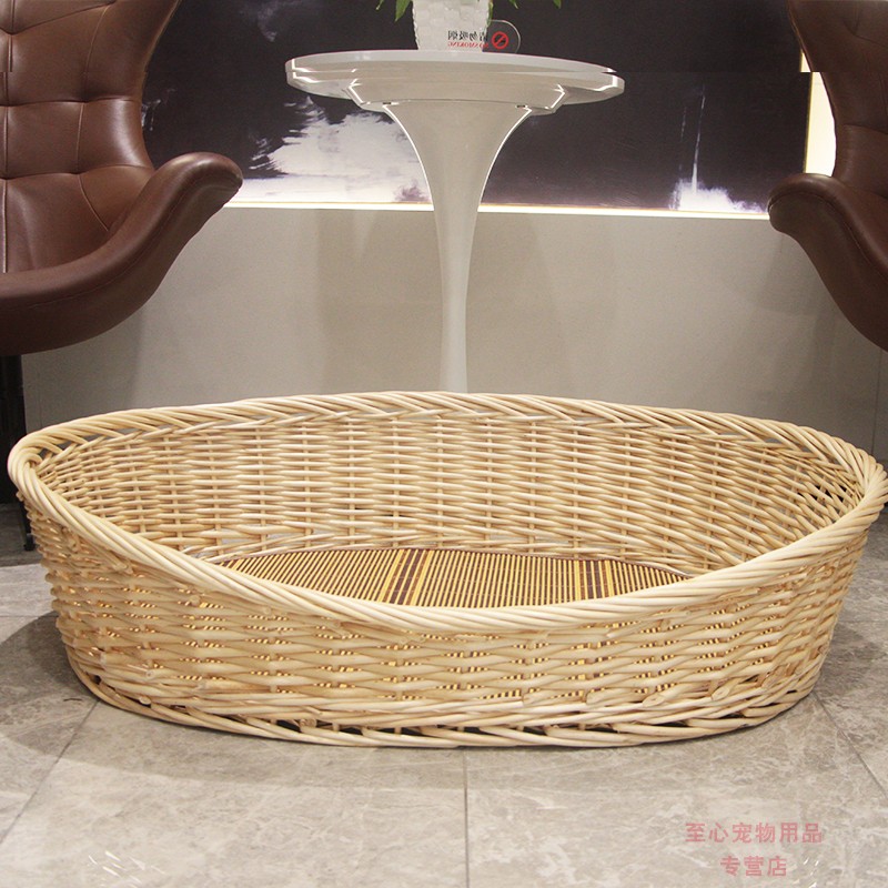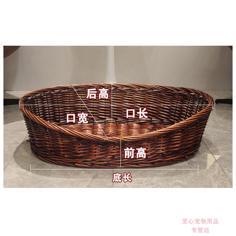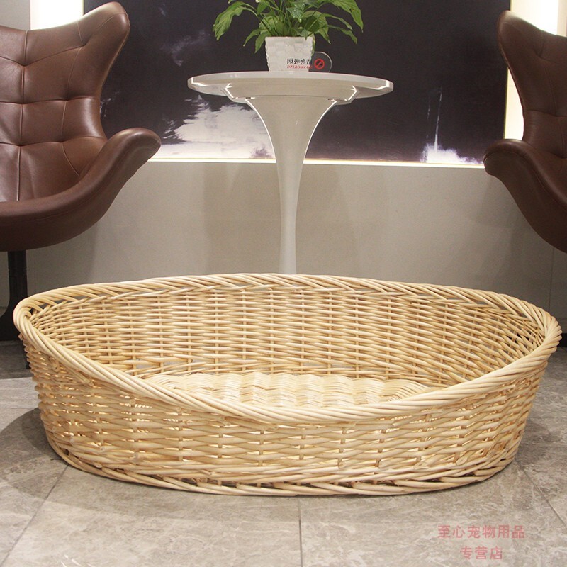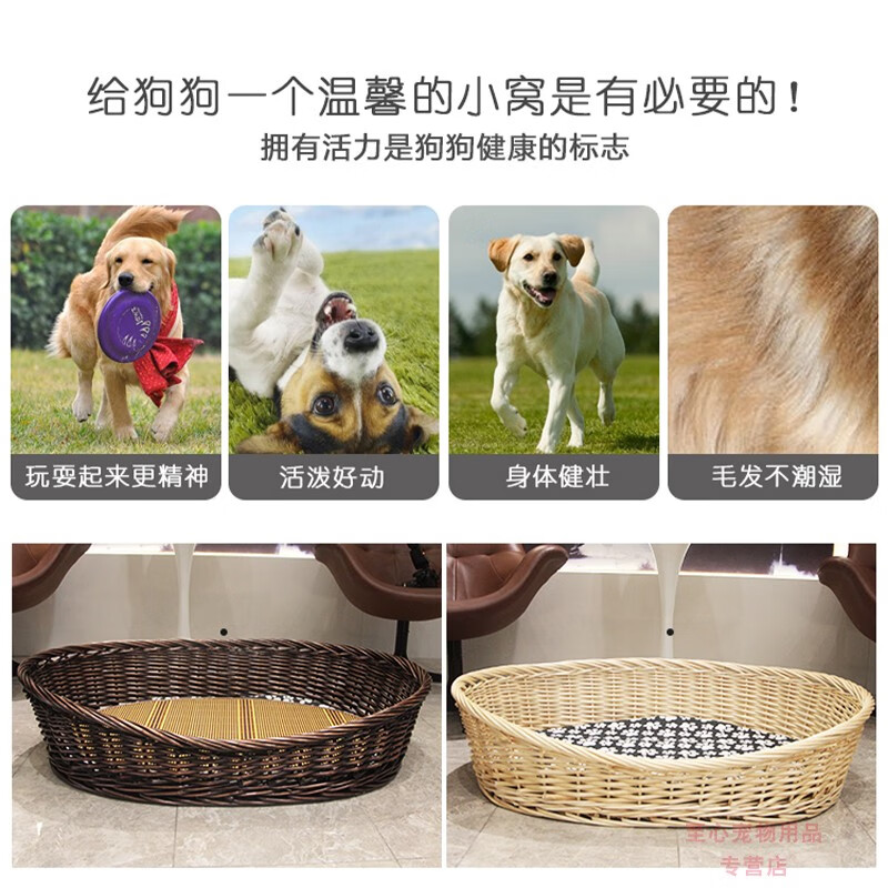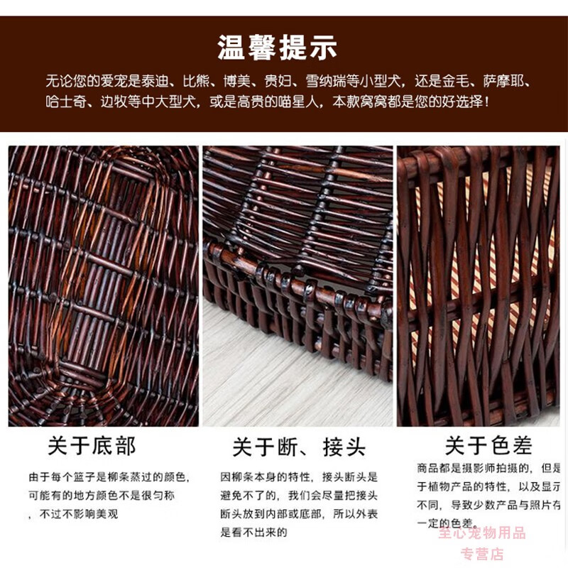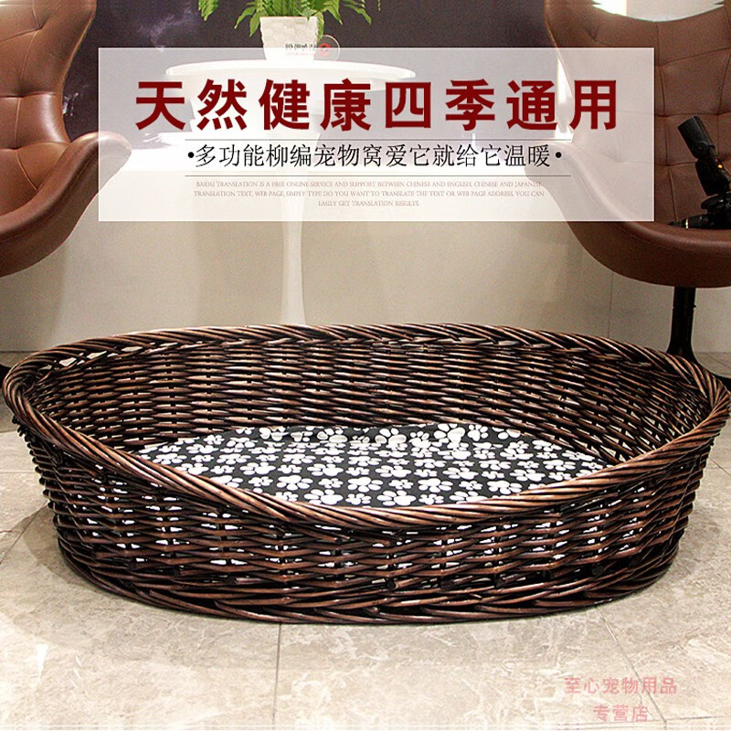 邦可臣柳编宠物窝加粗藤编可拆洗狗窝泰迪金毛大型犬狗窝狗床四季可用窝 天然原木色 4号口62x47住12斤以内 软垫