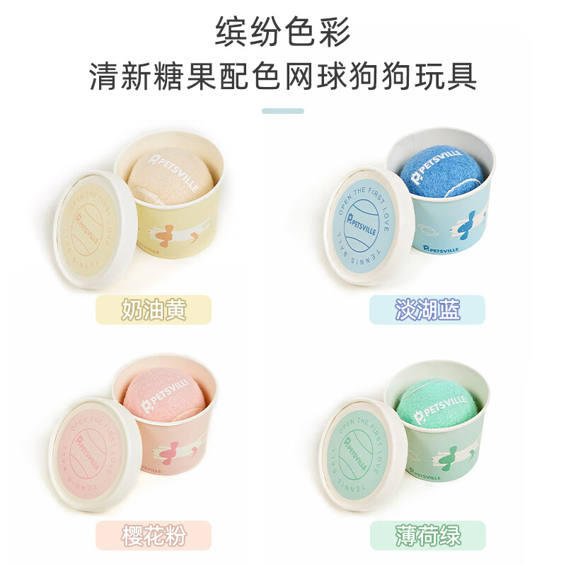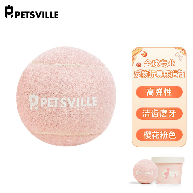 PETSVILLE 樱花粉狗狗网球玩具洁齿宠物玩具糖果配色互动训练宠物狗网球玩具适用中小型犬玩具球