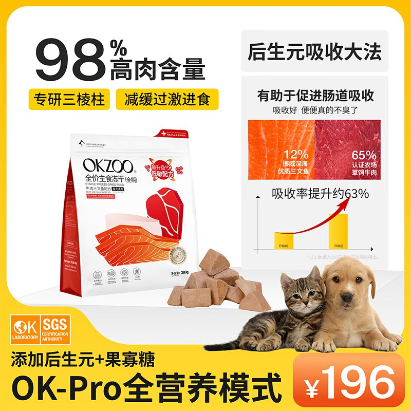 OKZOO牛肉三文鱼全价生骨肉主食冻干猫粮狗粮幼猫成猫 牛肉三文鱼主食冻干380g