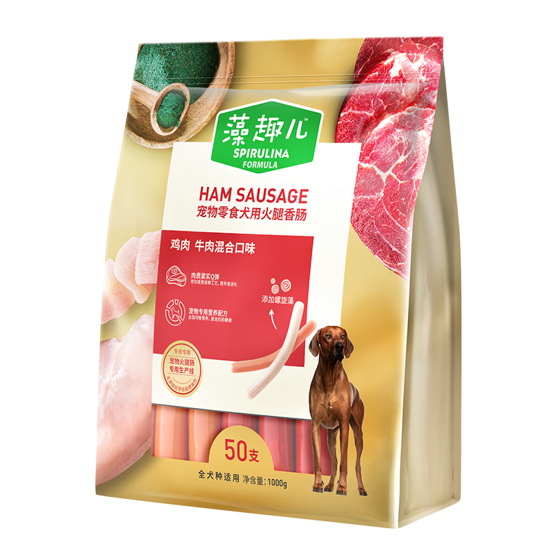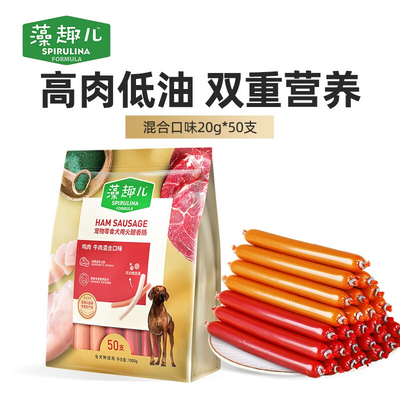 藻趣儿宠物狗零食 狗狗火腿肠高优肉质互动奖励 成犬幼犬通用 混合口味20g*50支