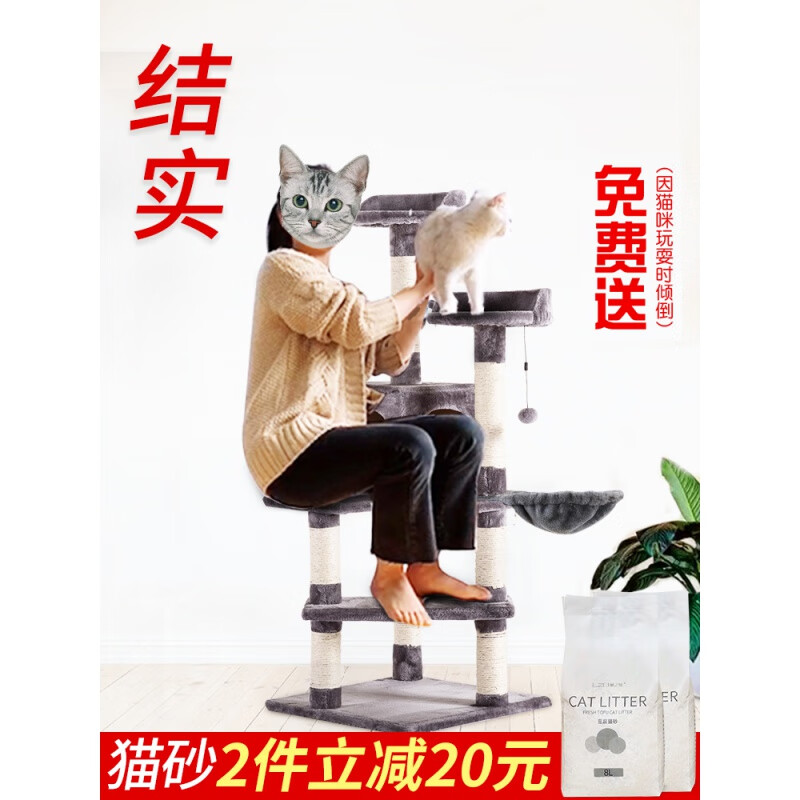 冬季顶天立地猫爬架通天柱带窝短绒布猫树猫窝一体冬季猫架子四季通用别墅大型 圆筒款(适用1~2只喵)