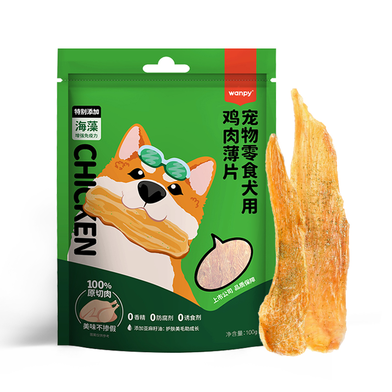 顽皮(Wanpy)鸡肉干狗零食100g鸡肉海藻鸡胸肉薄片成幼犬宠物零食狗粮