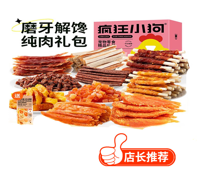 麦富迪(Myfoodie)疯狂小狗狗零食鸭肉干宠物泰迪柯基幼犬大小型犬耐咬磨牙棒 精装礼盒800g【 风干牛肉粒60g 1盒
