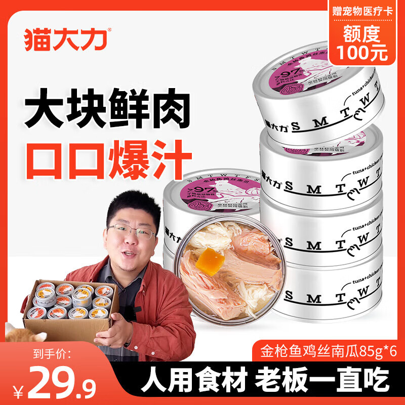 猫大力猫罐头金枪鱼通用零食罐头营养补水增肥湿粮幼猫咪零食用品慕斯奶 金枪鱼鸡丝南瓜85g*6罐