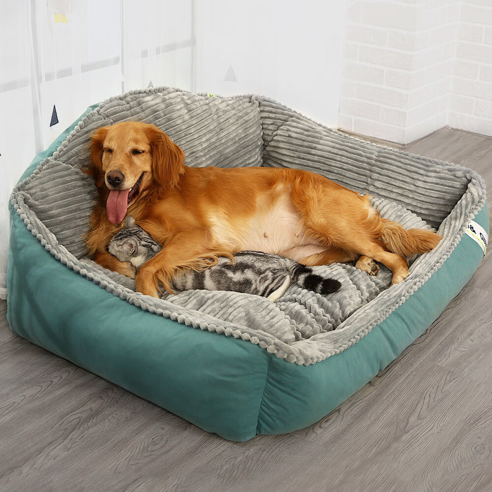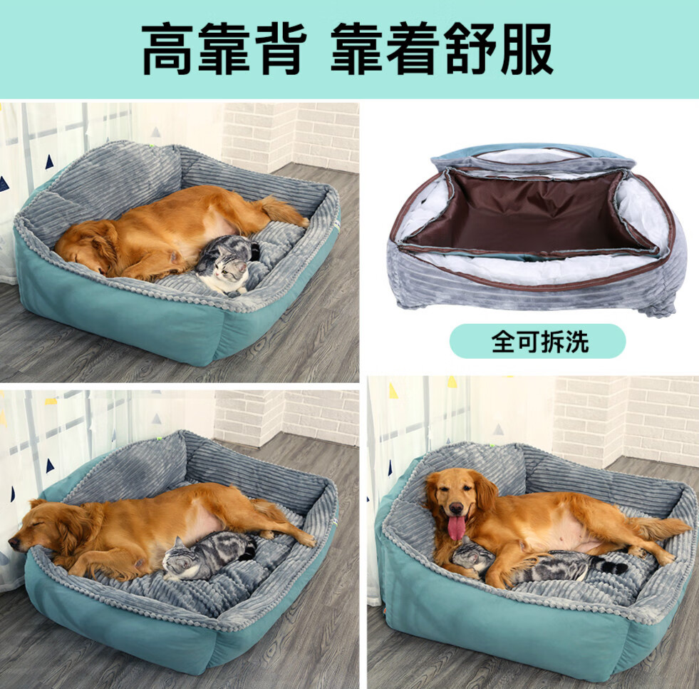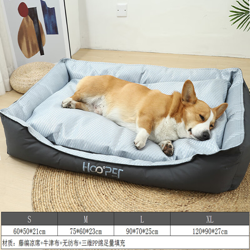 蒂乐森狗窝大型犬冬季保暖可拆洗金毛宠物冬天沙发狗垫子四季通用狗狗床 【现货】蓝色冰藤刺绣凉席窝 垫子双面可用 小号:60*50*23(建议10斤内宠物)