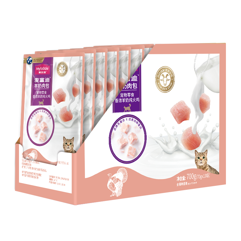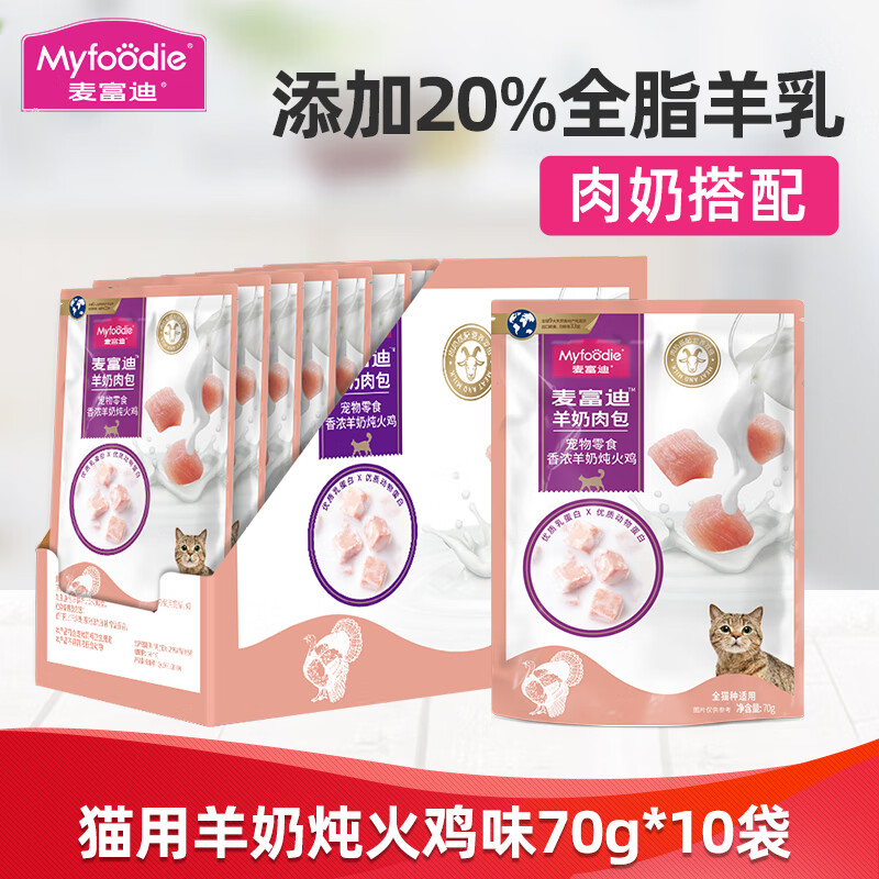 麦富迪猫湿粮 猫零食羊奶肉包 成猫幼猫肉粒包软包猫罐头湿粮 羊奶炖火鸡味 70g*10袋