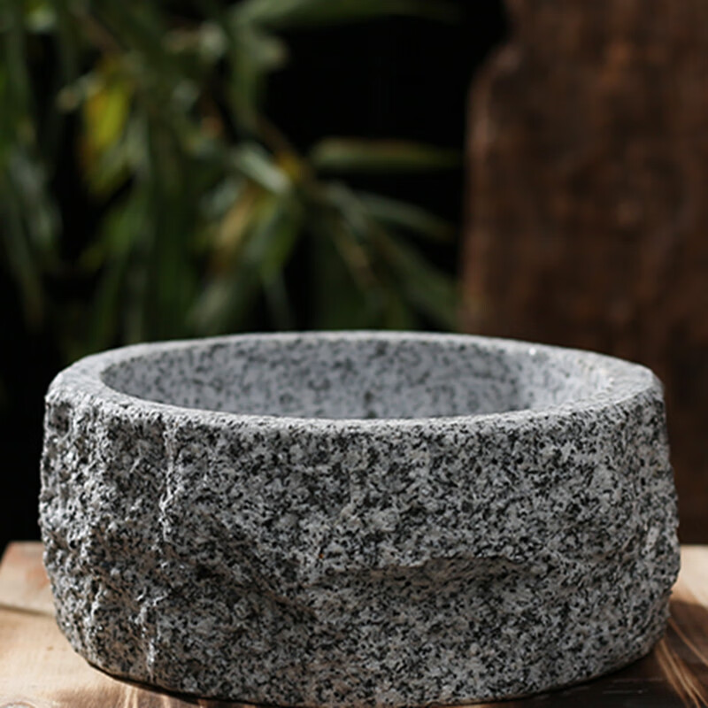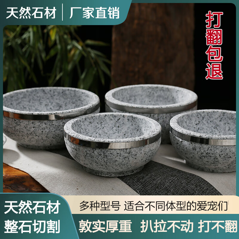 迪香尼猫碗石头狗盆猫碗狗狗食盆猫粮水碗宠物饭盆猫咪宠物饭碗喝水狗盆 石头碗直径12厘米