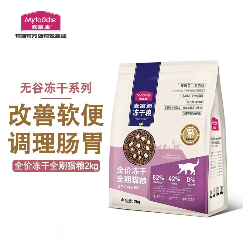 麦富迪(Myfoodie)麦富迪猫粮 天然无谷冻干三拼乳鸽子羊奶营养全期成猫幼猫粮奶糕 全价冻干全期猫粮2kg
