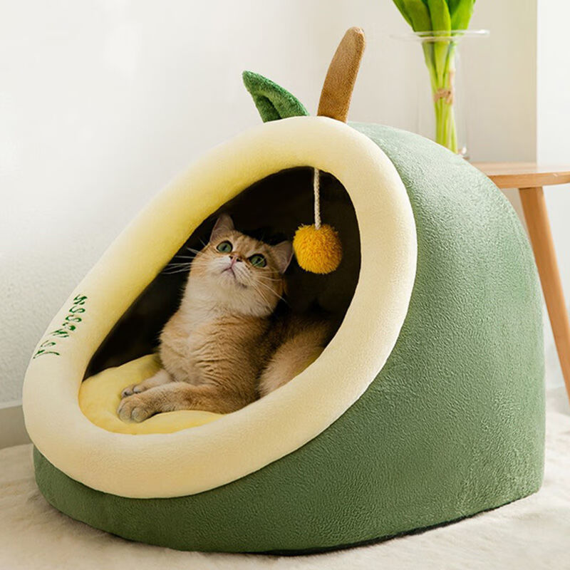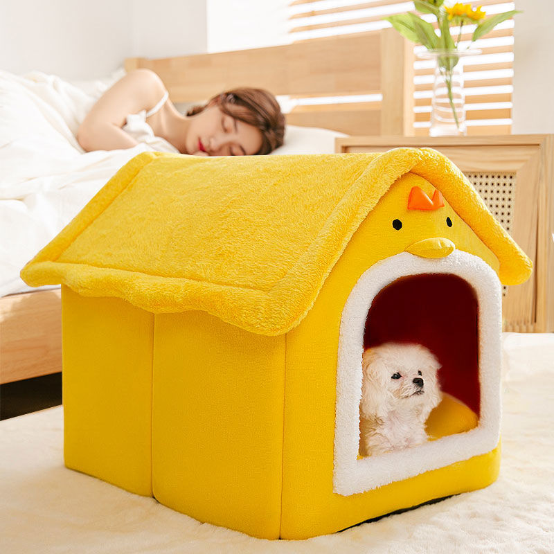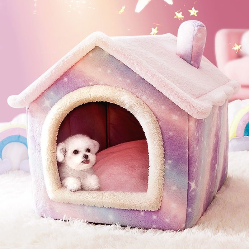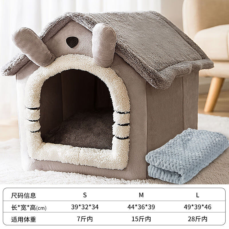 狗窝房子型四季通用可拆洗毛大型犬冬季保暖宠物窝猫窝狗屋用品 长耳朵灰猫 保暖毛毯 L【28斤内宠物】