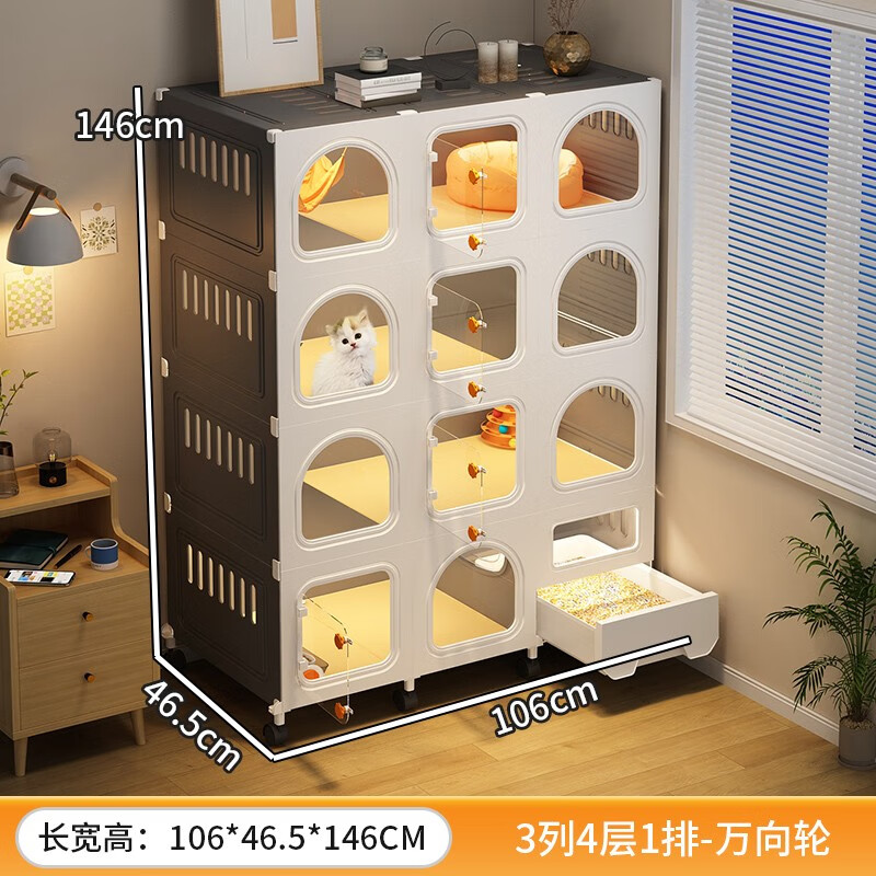 爱咪宠猫笼子超大号猫窝别墅隔离带厕所一体适合大猫柜房子宠物家用猫笼 带滑轮易清理【106*46*145】 猫厕款:封闭猫砂盆 猫铲