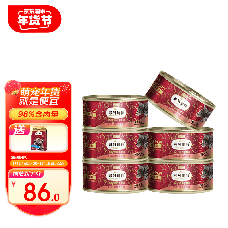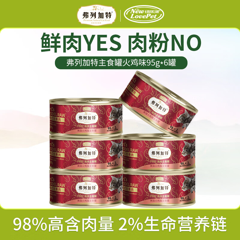 弗列加特猫罐头 生骨肉主食罐98%高含肉量成猫幼猫通用型猫湿粮 进口火鸡肉95g*6罐