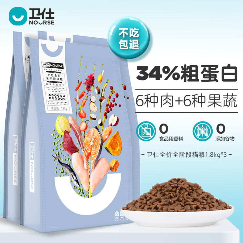 卫仕全价全阶段猫粮1.8kg*3幼猫成猫 猫咪卫士宠物主粮 共3包5.4kg