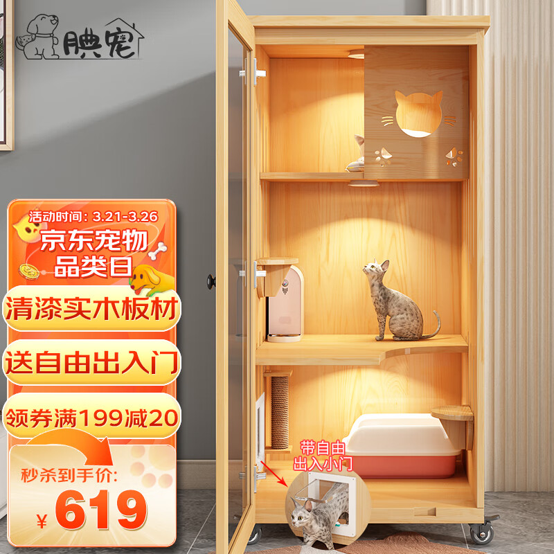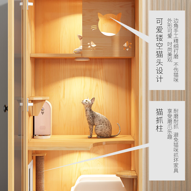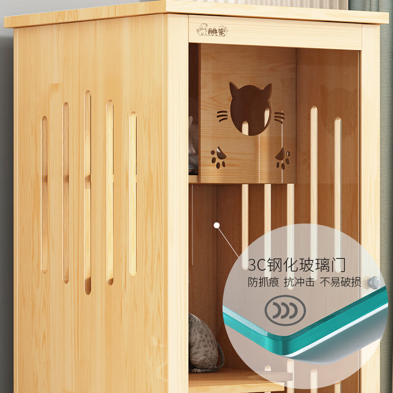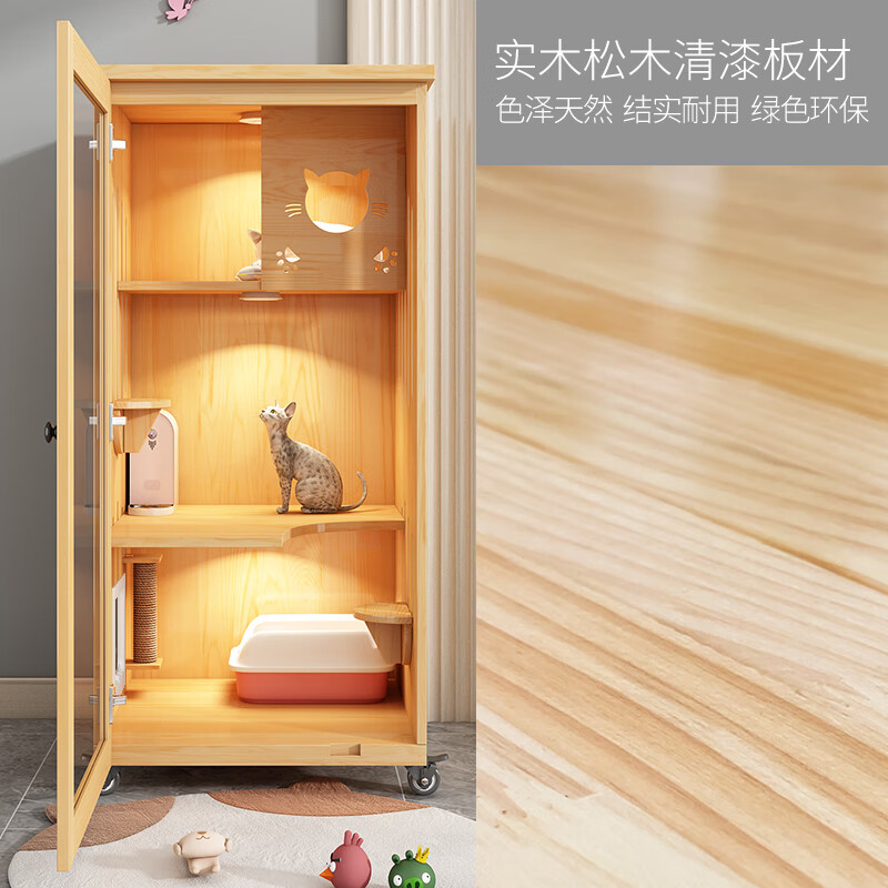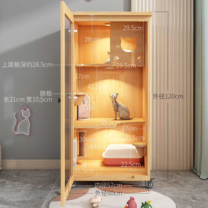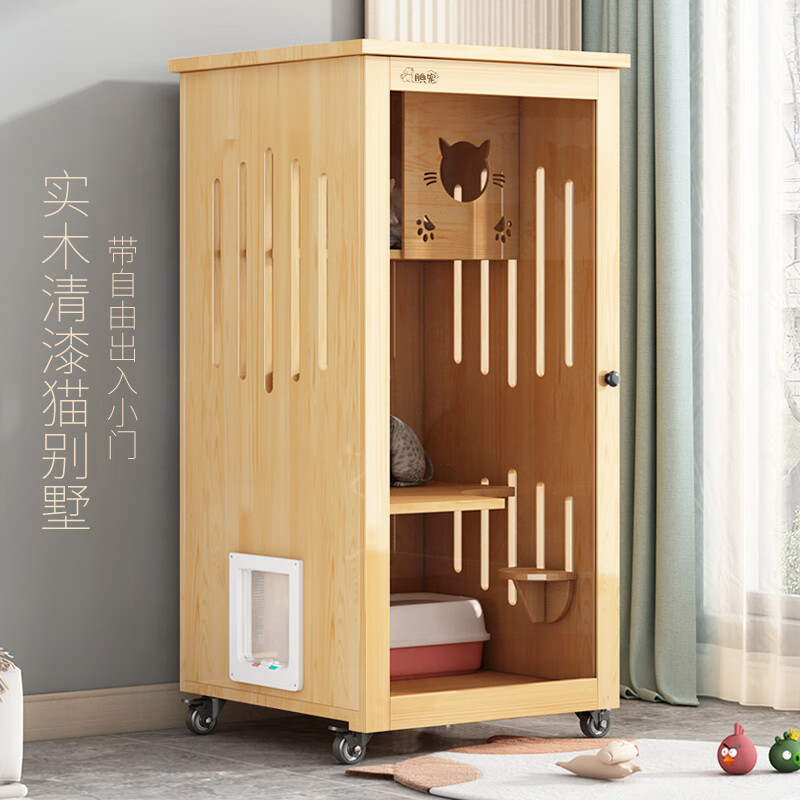 腆宠 猫笼猫别墅实木清漆猫柜猫笼子大号家用宠物猫窝猫舍120*60*60cm