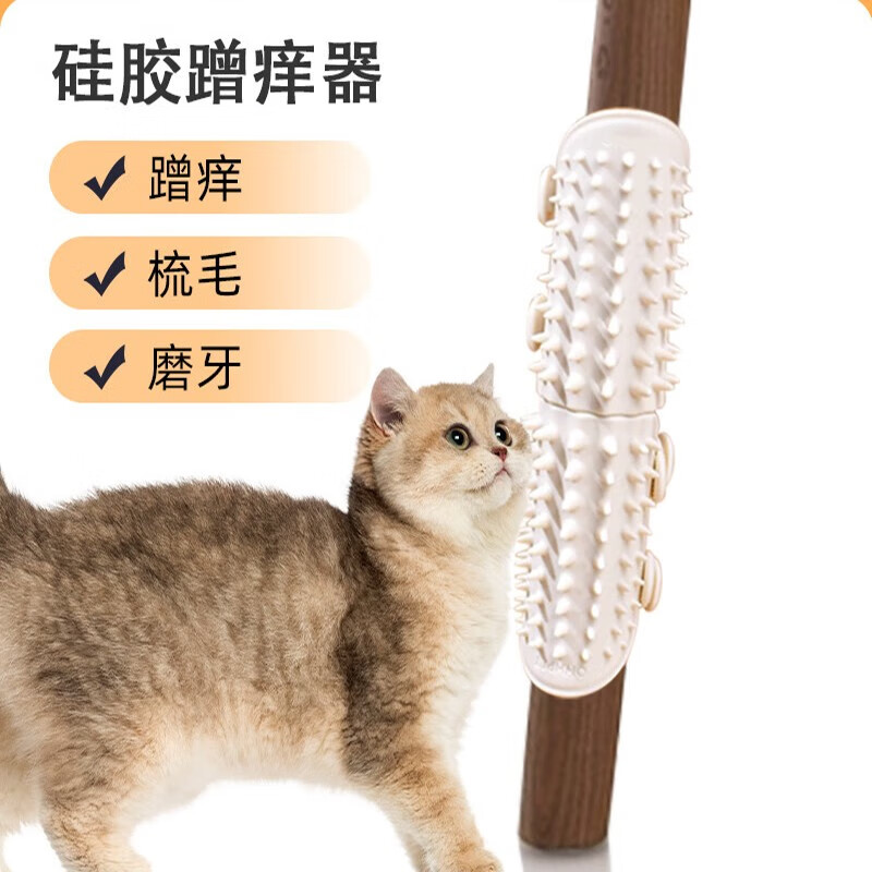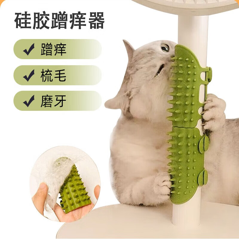 猫咪蹭痒器硅胶宠物桌腿绑带梳可调节水洗布偶去浮毛梳子猫抓板玩 猫蹭痒器-牛油果绿2片