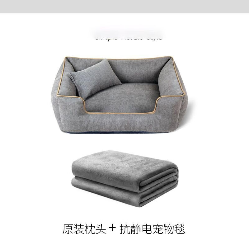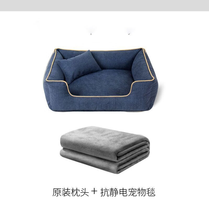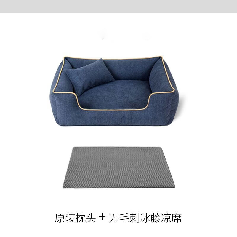 隐翅虫新款主子家狗窝猫窝可拆洗冬季保暖 小型犬泰迪狗垫子四季狗床 蓝彩条 小枕头 S-45*35*18(6斤内宠物)