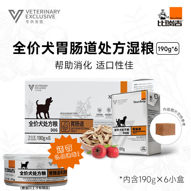 比瑞吉处方犬粮全价全期胃肠道湿粮肠炎厌食狗狗主食罐头 190g*12罐【2整盒】