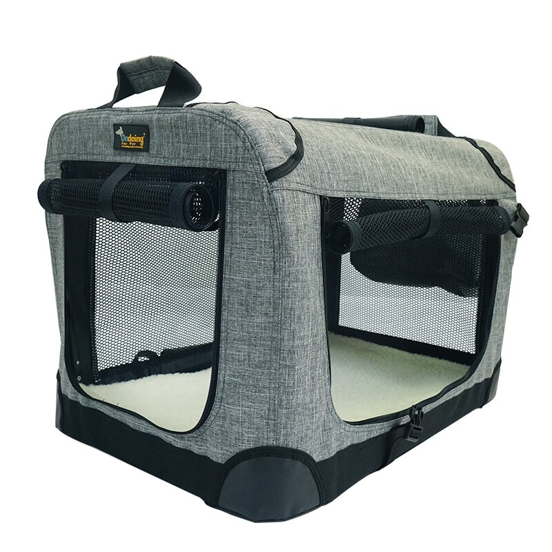 优贝卡狗帐篷 宠物狗笼子车载运输狗笼狗窝 可折叠 外出车载宠物笼 灰色 92*64*64cm重约5.6kg