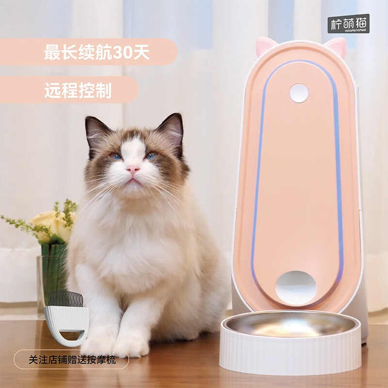 柠萌猫(NINGMENGMAO)宠物自动喂食器猫咪无线智能喂食器猫碗适配冻干远程控制储粮桶 粉色 Kathy Mo