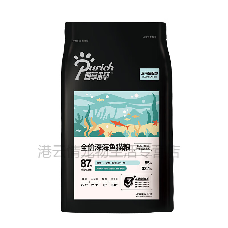 醇粹(Purich)黑标猫粮鳕鱼冻干成猫幼猫纯粹 深海鱼配方鳕鱼冻干猫粮1.5kg*1 1.5kg /包