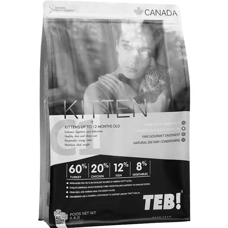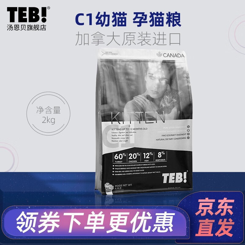 TEB汤恩贝 猫粮加拿大进口猫粮C系列全期全价幼猫粮怀孕母猫营养主粮鱼肉牛肉火鸡肉无谷天然粮增肥发腮 【进口】C1幼猫孕猫无谷粮2kg