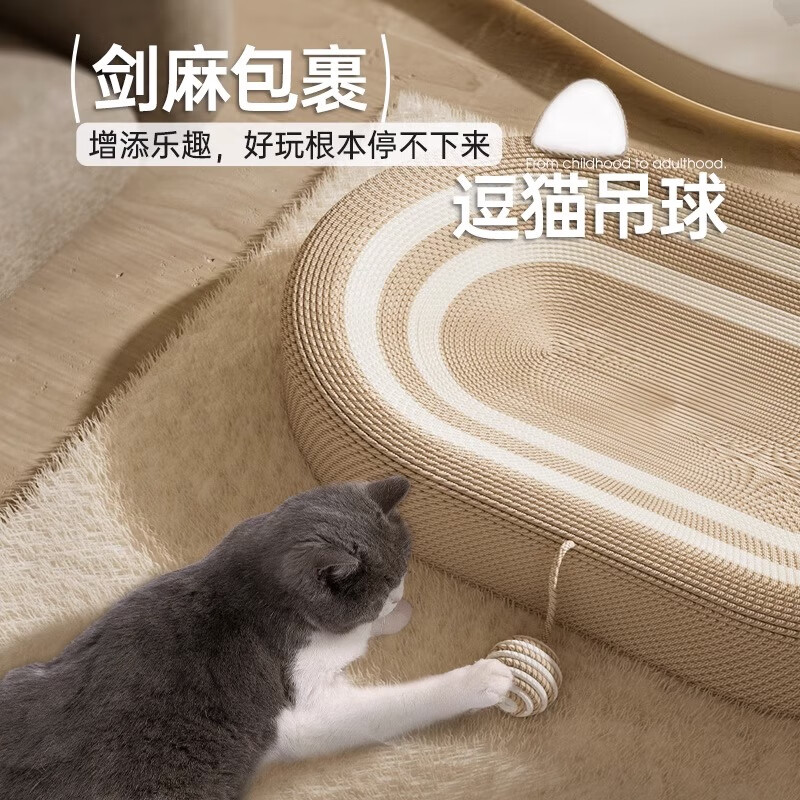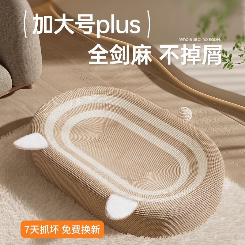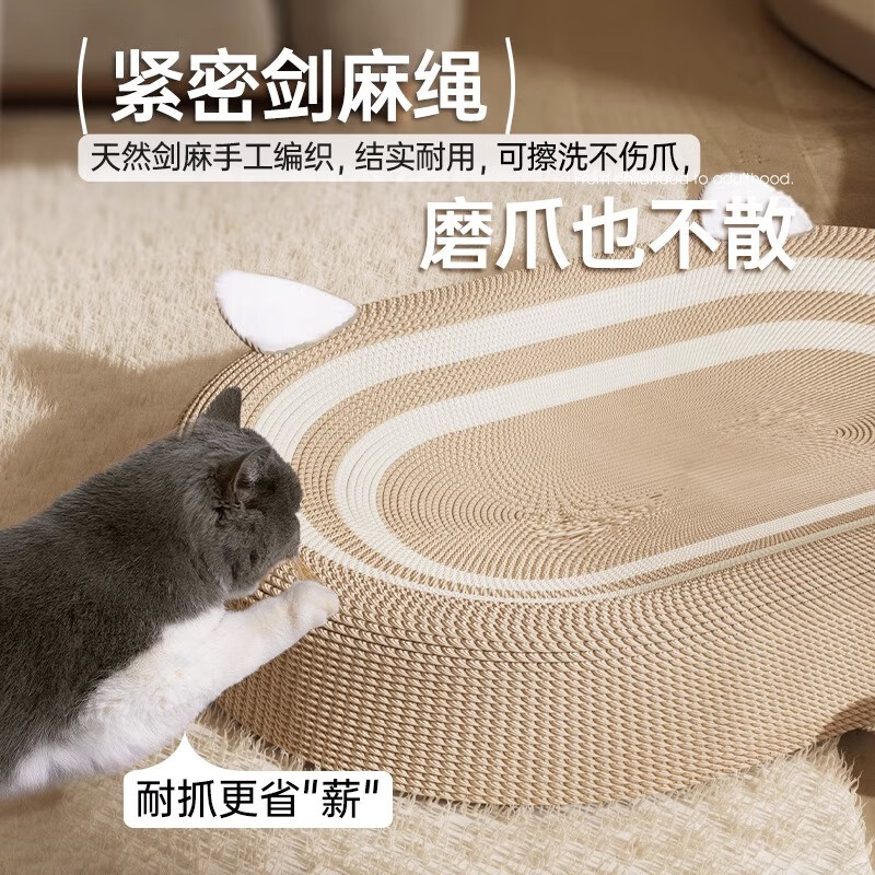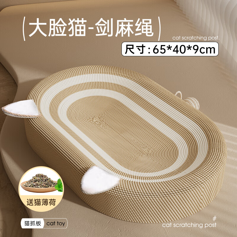 剑麻猫抓板猫窝一体耐磨不掉屑猫咪玩具猫爪板耐抓四季通用抓盆 65cm加大号【全剑麻猫抓板大脸猫】带猫薄荷