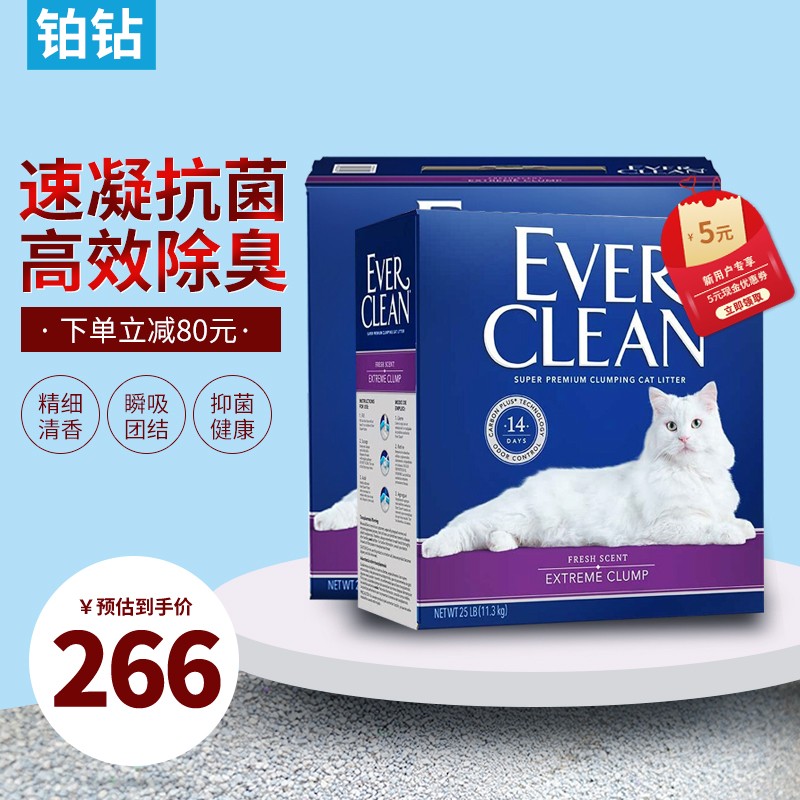 铂钻猫砂25磅膨润土低尘高效除臭细砂紫标瞬吸11.3kg2箱 紫标细砂-25磅(2箱组合装)