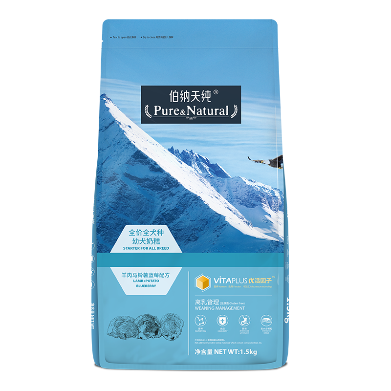 伯纳天纯狗粮 幼犬成犬狗粮博纳天纯宠物狗粮泰迪贵宾比熊博美小型犬粮小包装 全犬种幼犬/奶糕犬粮1.5kg【低敏配方】