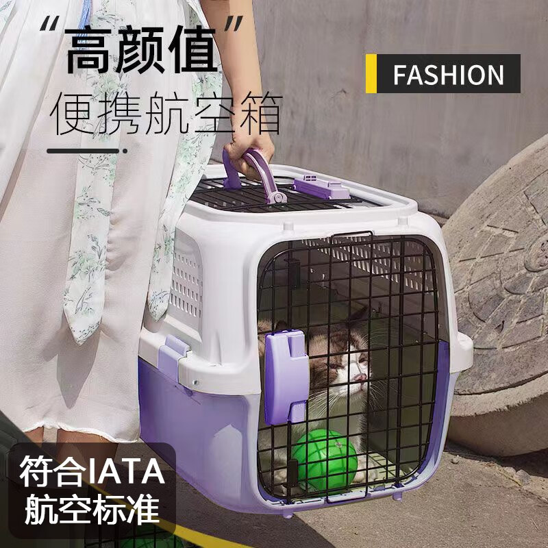 易立新加厚【带挂碗】宠物航空箱大号狗猫托运箱猫咪狗狗航空箱运输箱 贈隔尿板挂碗【天窗款】香芋紫色 M-适合10斤内猫犬