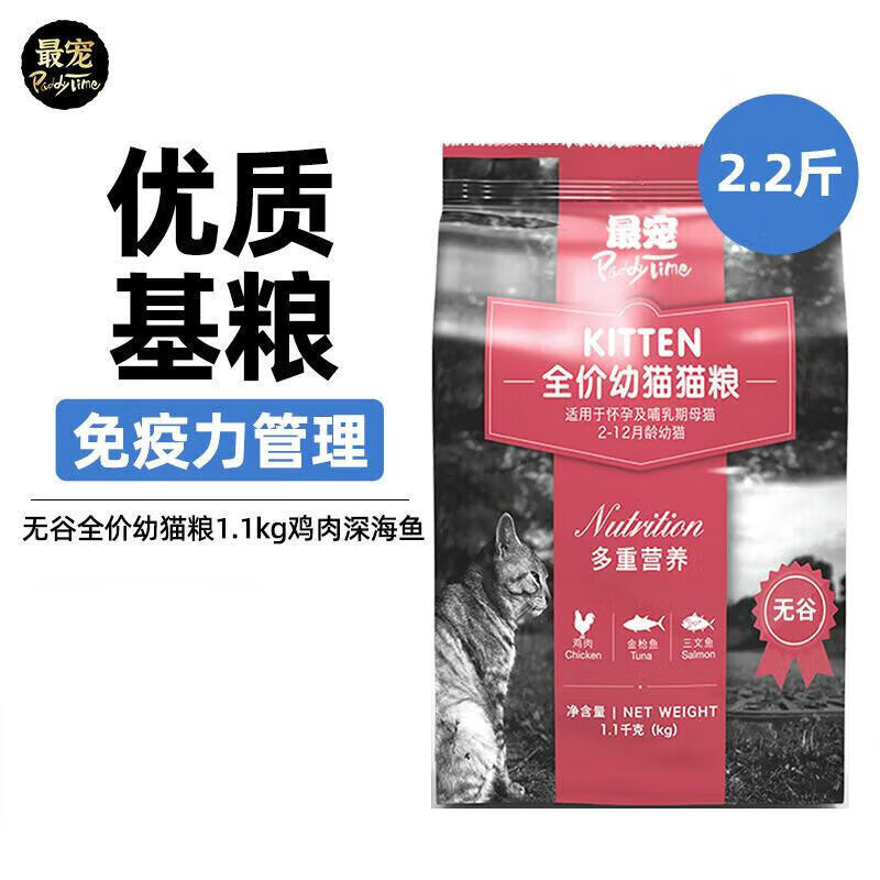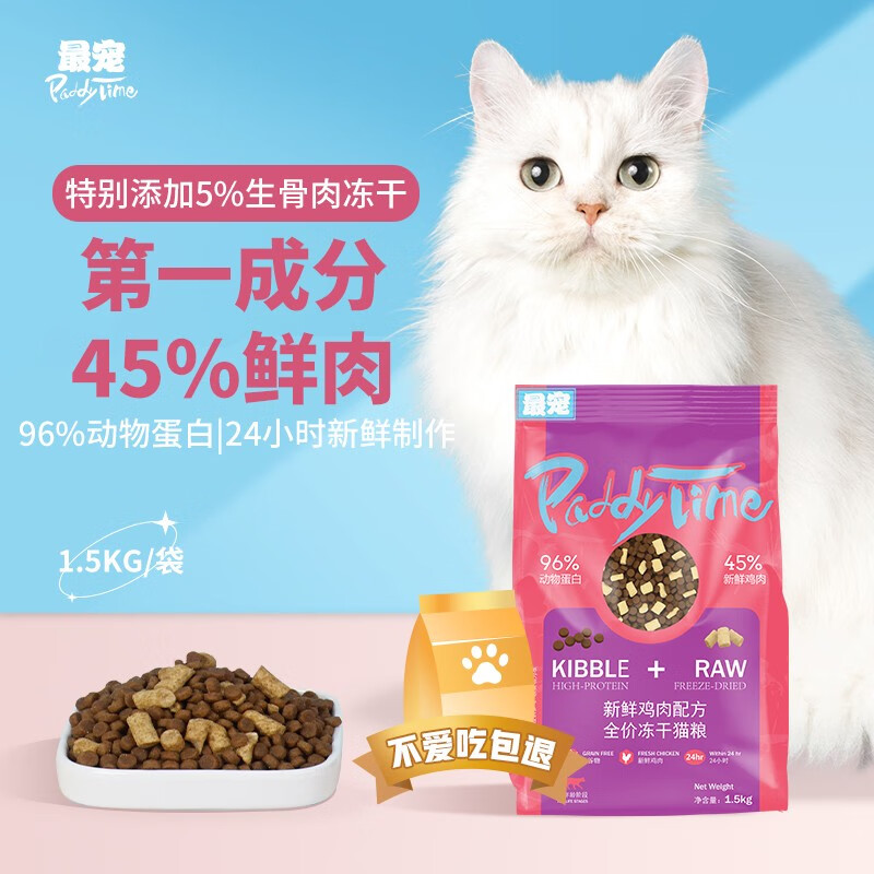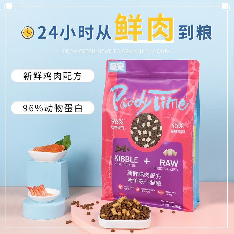 最宠(Paddy Time)猫粮鲜肉无谷全价冻干猫粮1.5kg低敏鸡肉 成幼猫宠物主食品 全价幼猫粮1.1kg